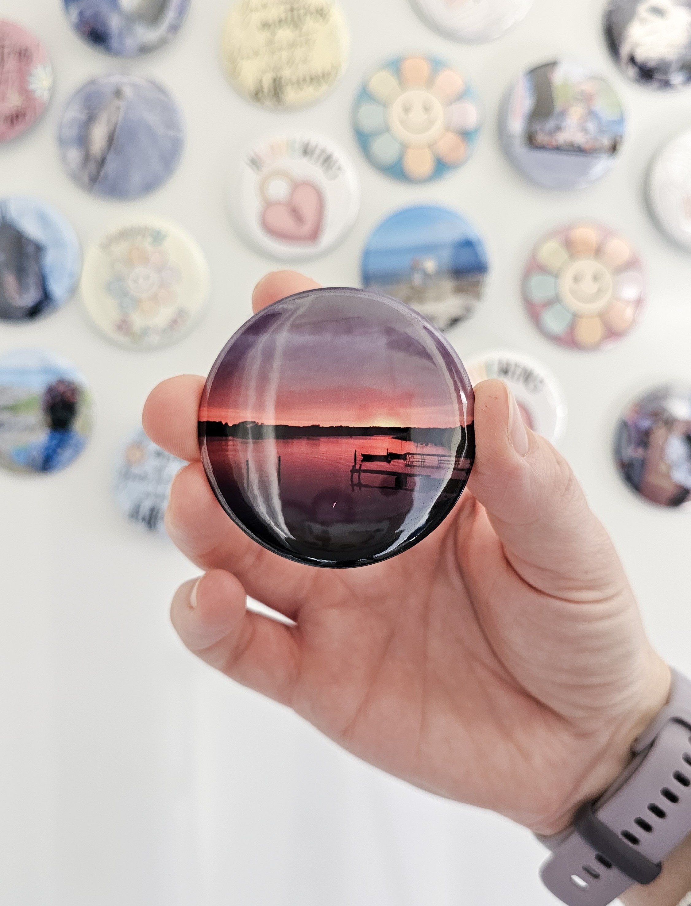 I tillegg til Mayas knyterier driver vi også nettbutikken HappyButtons. Der finner du et utvalg av personlige buttons i ulike varianter: