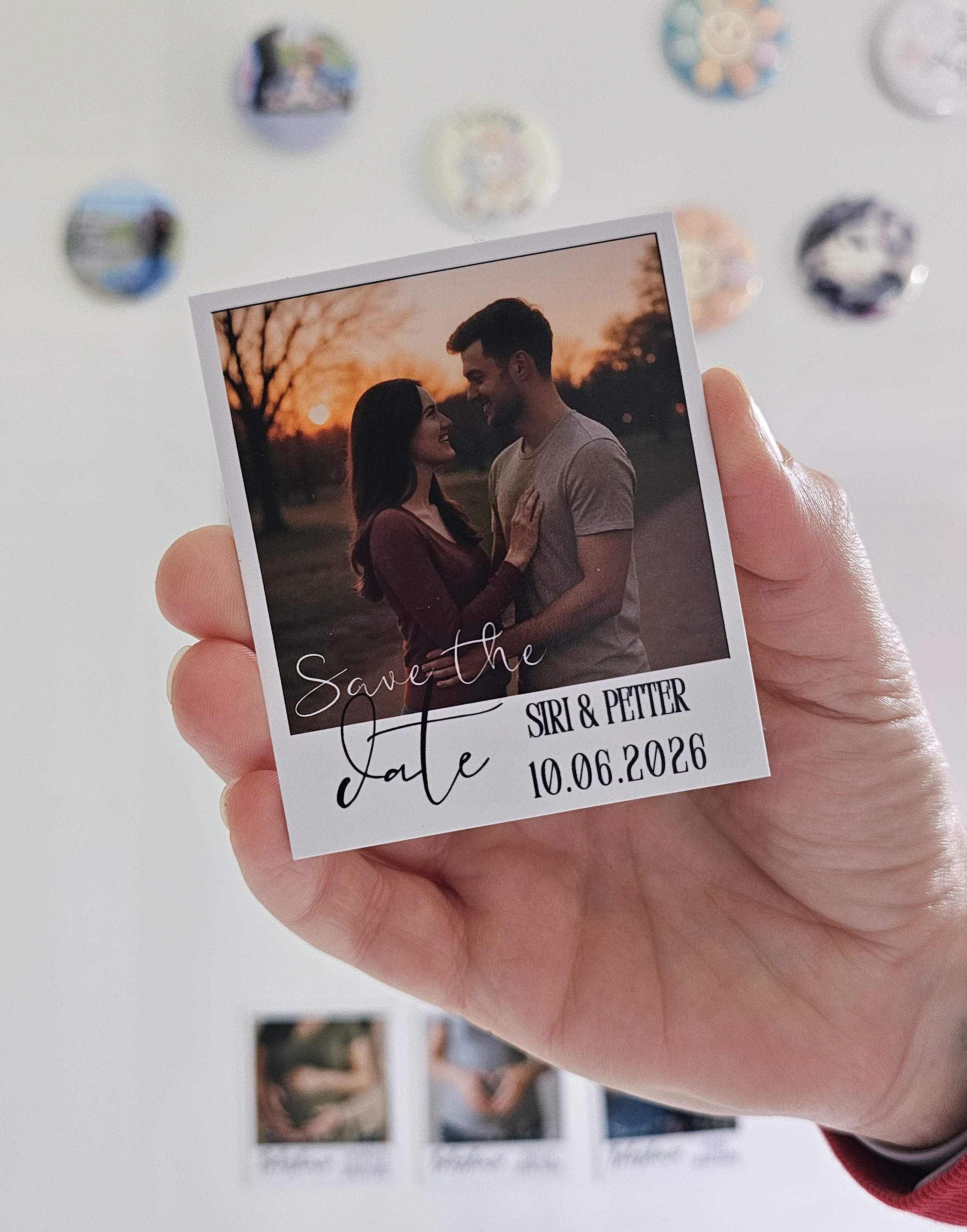 I tillegg har vi personlige kjøleskapsmagneter, samt Save the date magneter.