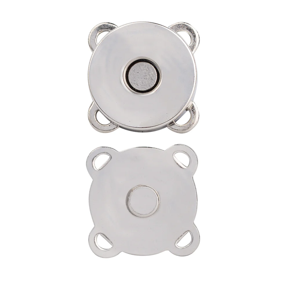 Praktiske magnetknapper til heklede, strikkede eller makramé-vesker. Du syr de enkelt på der du vil plassere dem, og med et lite klikk fester de seg til hverandre og holder vesken din sikkert lukket.