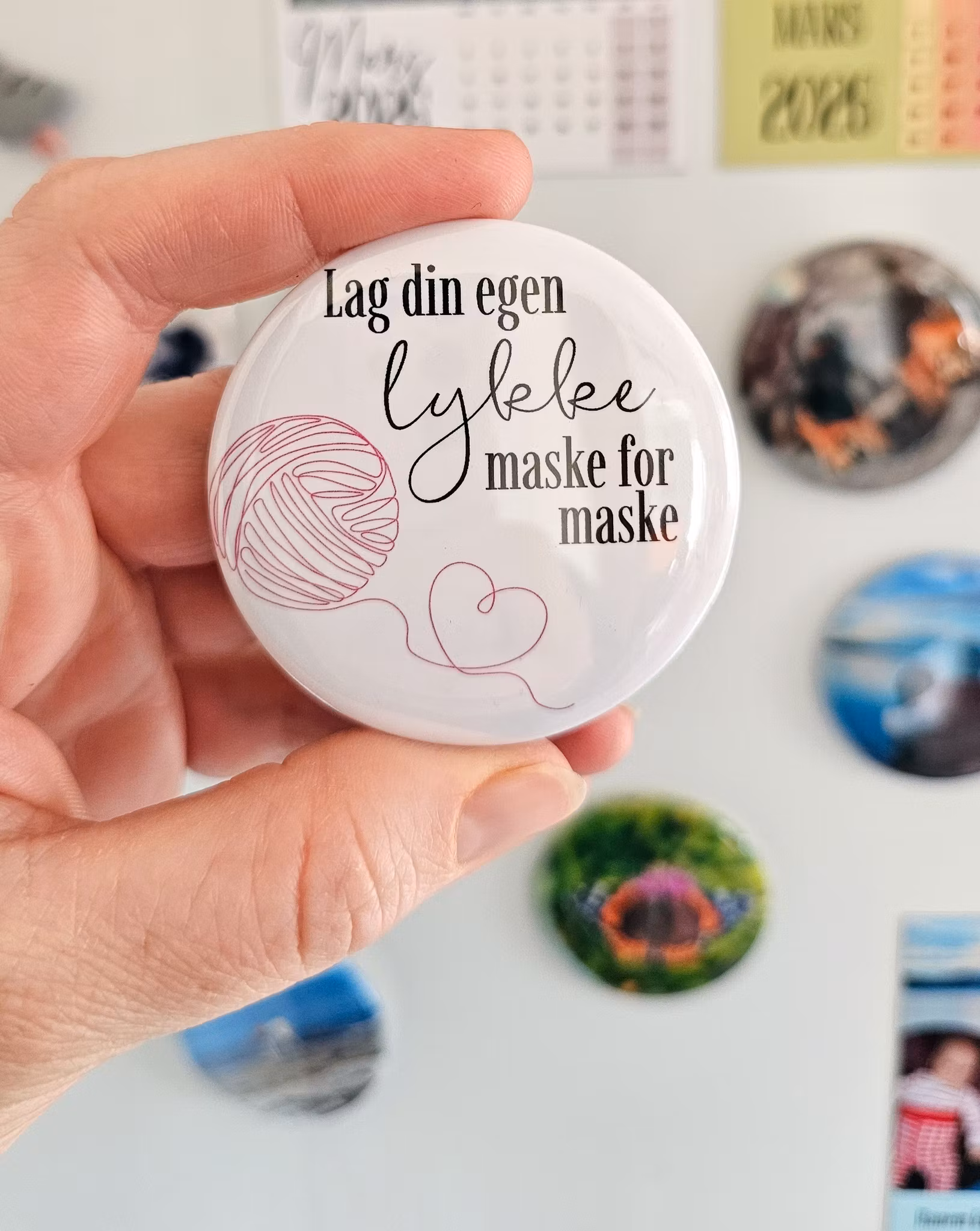 Buttonsmagneter med ferdig design fra HappyButtons. Motivet er trykket på glansfullt fotopapir av høy kvalitet, som gir klare og fine farger. Du kan feste de på alle metalliske overflater, som for eksempel kjøleskap, mikro, oppvaskmaskin, eller brødrister. Perfekt som pynt eller liten gave!